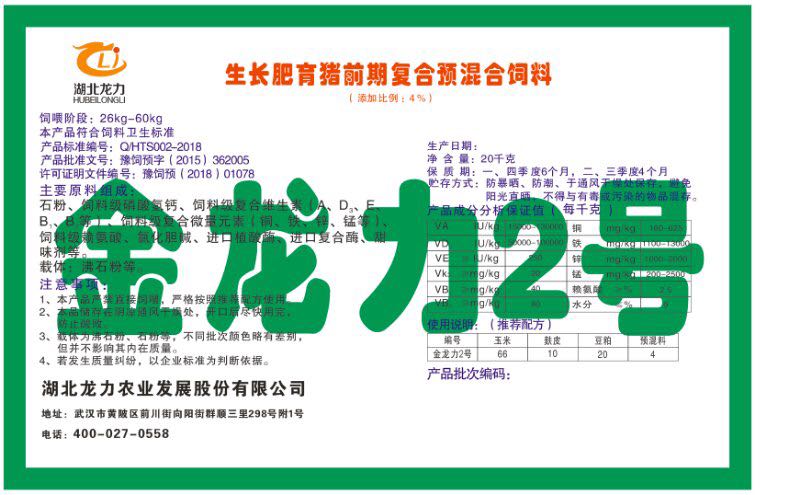 湖北龍力農(nóng)業(yè)發(fā)展股份有限公司坐落于武漢市黃陂區(qū)前川街向陽街群順三里298號附1號。公司成立于2014年6月,公司自成立以來把“創(chuàng)全球最大養(yǎng)豬綜合服務(wù)”為企業(yè)愿景。致力于打造教保料品牌”作為公司發(fā)展的明確目標(biāo)。公司一直致力于豬營養(yǎng)的研究和開發(fā),積極與國內(nèi)外高校和科研機(jī)構(gòu)合作,推廣養(yǎng)豬技術(shù)、動物營養(yǎng)新概念,向世界農(nóng)牧企業(yè)學(xué)習(xí)與合作。公司采用國內(nèi)先進(jìn)的生產(chǎn)工藝,選擇高精度電子配料秤,高均勻度、無殘留混合機(jī)等先進(jìn)設(shè)備....